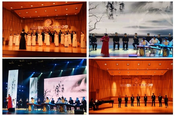 浙江省大学生艺术节由浙江省教育厅、浙江省文化厅、浙江省财政厅、共青团浙江省委、浙江广播电视集团共同主办,是我省目前规格最高、规模最大、影响最广的大学生艺术盛会。本次大学生艺术节活动主题为“民族魂·中国梦”,共吸引了来自全省95所高校近4000名师生参加,报送合唱、合奏节目共461个。其中,《大江东去》《城南送别》获得大合唱组一等奖;《三百六十五里路》(指导教师:包卫党、宋雪萍)获得小合唱组一等奖;《花儿红》《阳关三叠》(指导教师:陈静)均获器乐组二等奖。