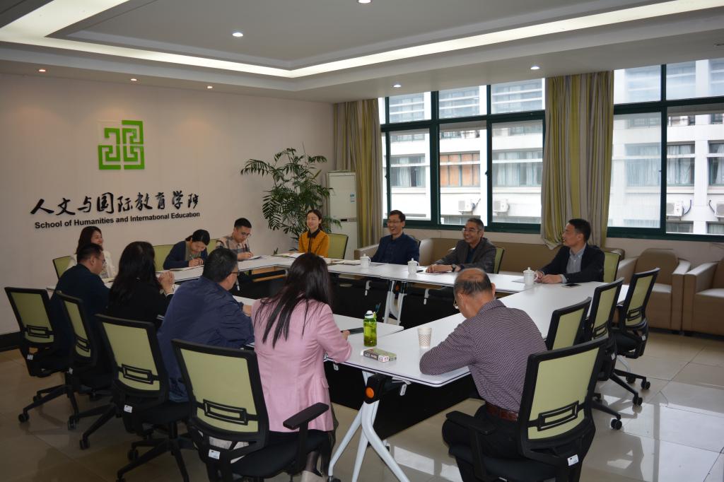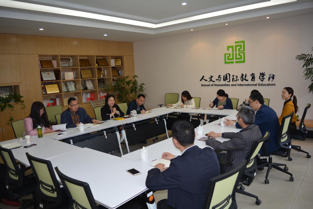 427日上午,校党委书记龚建立来到我校艺术教育中心进行专题调研座谈,校办公室主任应荣球、教务处长路胜利陪同,人文与国际教育学院院长叶晗、副院长凌喆、副书记郭峰、艺术教育中心主任包卫党及中心全体教师参加座谈交流。