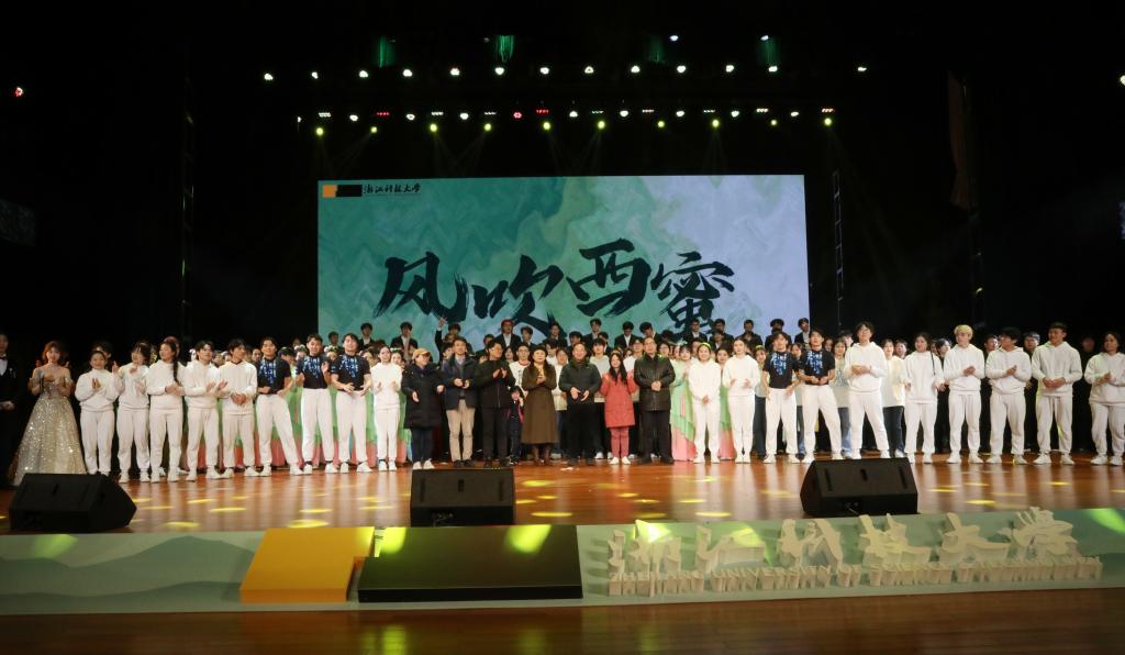 晚会以“风”为主题,在悠扬婉转的《风吹西蜜》合唱序曲中拉开帷幕。从“御风舞·自由之美”“逆风扬·力量之美”“寻风径·传播之美”3个篇章,在尾声“乘风逐梦”中落幕。学生以精彩的节目演出汇报公共艺术教育成果,有群舞《淡妆浓抹总相宜》《刀锋》《光·生息》,合唱《花开忘忧》《嫂子颂》,独唱《在那东山顶上》,器乐小合奏《花儿红》《钱塘春想》,钢琴独奏《夕阳箫鼓》,话剧《打开那扇门》、小品《同桌的你》、音画诗《觉醒年代》等十余个节目,其中多个作品为2023年浙江省大学生艺术节一等奖、二等奖的获奖作品。
